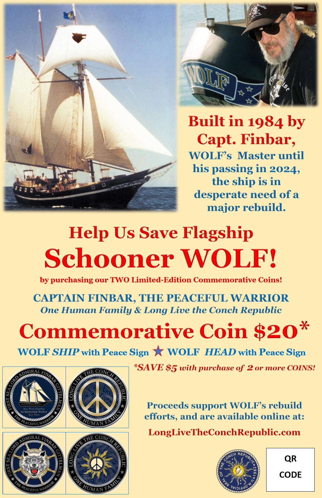 *100% of all proceeds will be used to help save the Schooner Wolf!